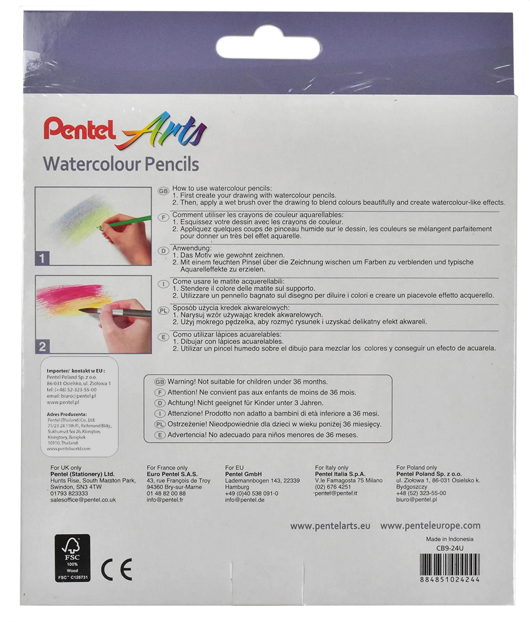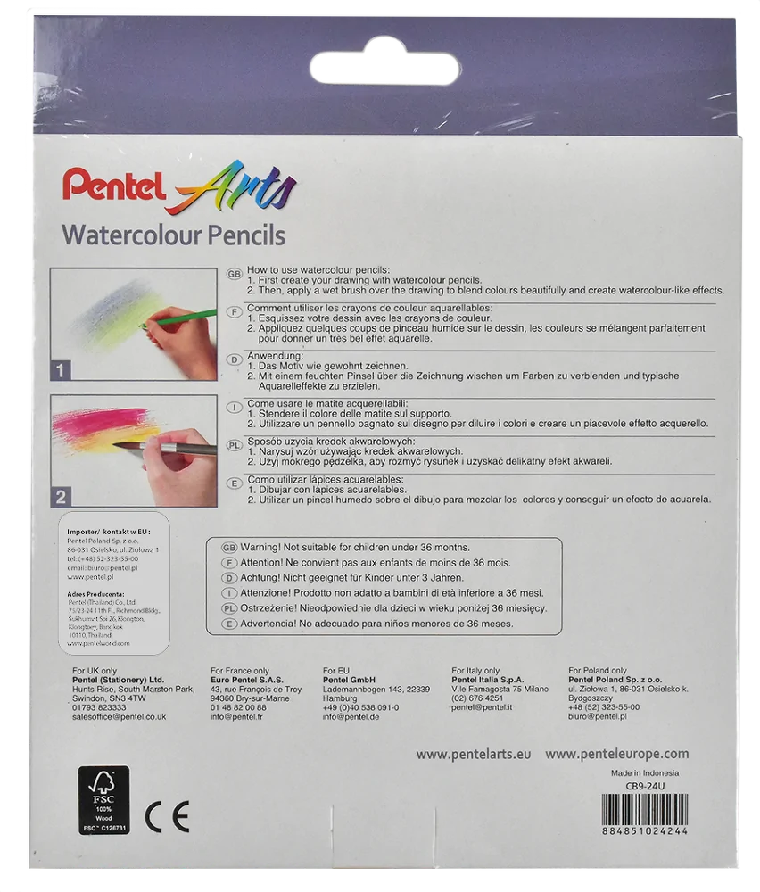 Do kolorowania, rysowania i tworzenia wodnych obrazów czy ilustracji. Na sucho lub mokro, w technice samodzielnej lub łączonej. Wystarczy narysować wybrany motyw, pokolorować go kredką akwarelową i rozmyć barwy za pomocą wodnego pędzelka Pentel FRH lub tradycyjnego pędzelka nasączonego wodą.